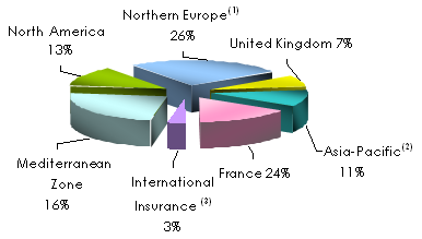 Breakdown in % of the 2010 insurance activities per geographic zone