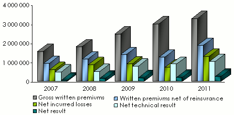 Year after year the company has patiently built and established itself with both turnover and results growing steadily. During the 2007-2011 period, premiums have more than doubled while net result was multiplied by 4.6.