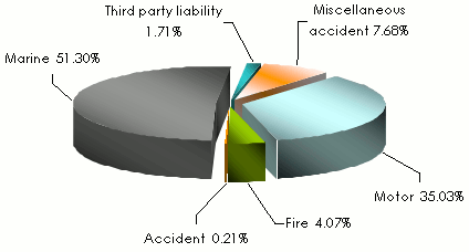 Breakdown of gross written premiums of BICOR Assurances Générales per class of business in 2011