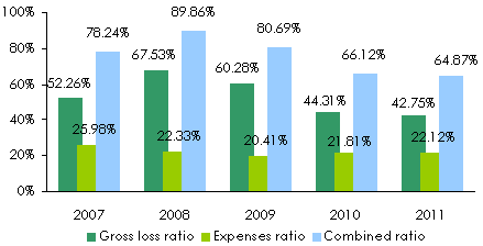 Technical ratios of BICOR Assurances Générales: 2007-2011
