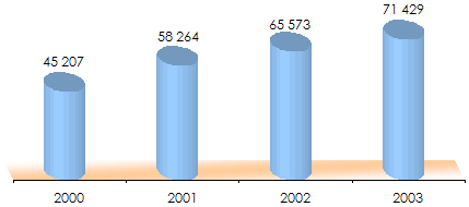 in USDYears | 2000 | 2001 | 2002 | 2003 |