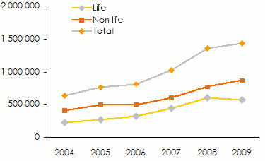 Non life | 406 718 | 485 813 | 494 481 | 596 748 | 763 755 | 871 479 |