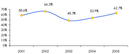 in millions USD| 2001 | 2002 | 2003 | 2004 | 2005 | |