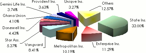 Ghana Union Assurance | 34 192 | 4 181 630 | 4 215 823 | 4.10% |
