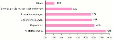 Source: «IT risk management report», Symantec Within the same company, there exists a disparity of risk perception by employees of different departments. With nearly 70% of employees who feel well informed, staff attached to finance and administration are the best prepared to risks.