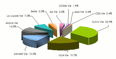 The insurance industry in Cote d'Ivoire: market shares of the life insurance companies in 2016