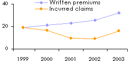 | Class of business | 2002 | 2003 | 2002 | 2003 | 2002 | 2003 |