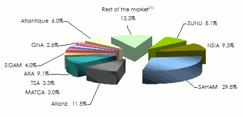 The insurance industry in Cote d'Ivoire: market shares of the top ten non life insurance companies in 2016