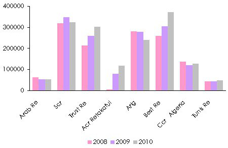 Gross written premiums of national and regional reinsurers in the MENA zone: 2008-2010