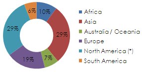 Breakdown per continent of the 820 catastrophic events that occured in 2011