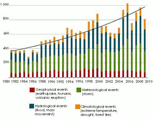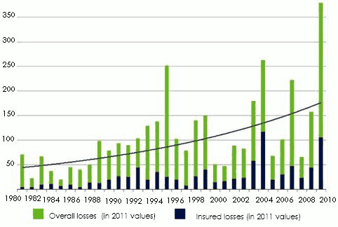 A clear trend is being set for the last thirty years. The scale of the damage has been accounted for by the increase in insurance penetration rate in risky zones, by population growth and by the leap of insured values. Furthermore, human activity is now seriously blamed for rising temperatures which led to a change in water cycle, with the number of cyclones, floods and torrential rains poised to increase in the future.