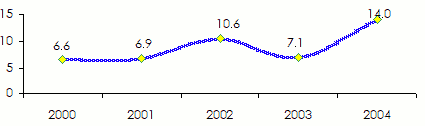 | 2000 | 2001 | 2002 | 2003 | 2004 | |