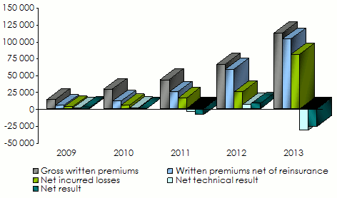 Despite strong growth in premiums which went more than eightfold within a period of five years (2009-2013), the company has been struggling to report positive results. The year 2013 was particularly disappointing with a net loss of over 26.5 million USD for gross written premiums of 112 million USD.