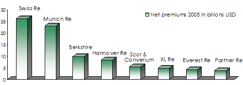 On the opposite, Converium, 84% of whose activities are made in the property and third party liability classes, stands as a suitable non-life reinsurer.