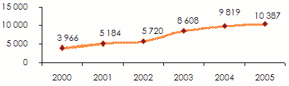 - Penetration rate (2005): 7.47%