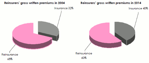 Evolution of insurance and reinsurance activities between 2004 and 2014