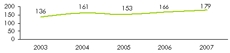 in thousands USD| 2003 | 2004 | 2005 | 2006 | 2007 | 2006/2007 growth | |