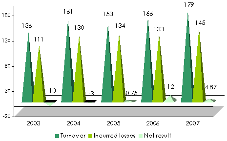 Net result (after taxes) | -10 284 | - 3 478 | 753 | 12 326 | 4 875 |