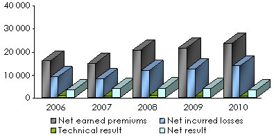 Evolution of premiums, losses, management expenses and results: 2006-2010