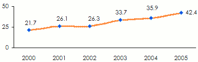 in millions USD| Classes | 2000 | 2001 | 2002 | 2003 | 2004 | 2005* |