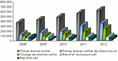 Répartition des primes acquises nettes par branche: 2008-2012