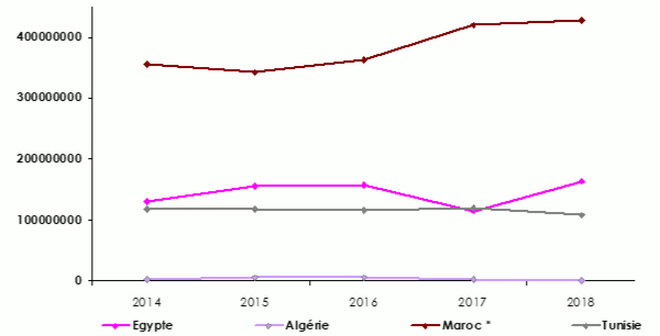 Maroc* | 355 994 000 | 341 309 000 | 362 816 000 | 420 453 000 | 427 435 000 |
