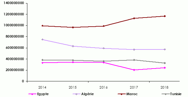 Maroc | 997 534 000 | 966 432 000 | 988 631 000 | 1 128 389 000 | 1 169 453 000 |
