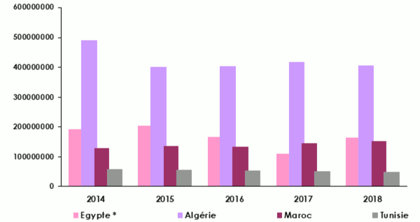 Algérie | 751 230 000 | 627 177 000 | 592 286 000 | 567 860 000 | 573 847 000 |