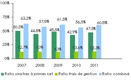 Evolution des primes, sinistres, frais de gestion et résultat: 2007-2011