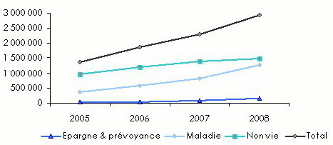Epargne&prévoyance | 51 523 | 3,7 | 58 110 | 3,1 | 87 381 | 3,8 | 158 251 | 5,4 | 81,6% |