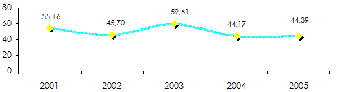 en millions USD| Branches | 2001 | 2002 | 2003 | 2004 | 2005 |