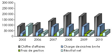 Evolution des primes, sinistres, frais de gestion et résultats