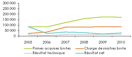 Primes cédées en réassurance | 60 592 | 61 316 | 90 982 | 106 364 | 117 591 | 110 645 |