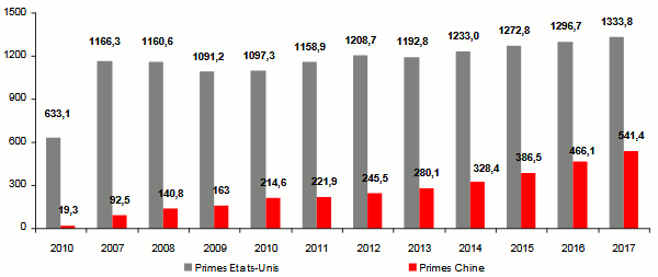 Etats-Unis vs Chine : Evolution des primes d’assurance : 2000-2017