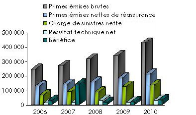 en milliers USDEvolution des primes émises nettes![]() | Evolution de la charge sinistre nette![]() |