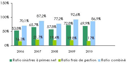 Evolution du rapport sinistres à primes net par branche: 2006-2010