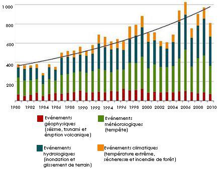 Nombre de catastrophes naturelles dans le monde: 1980 - 2011