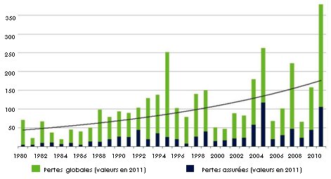 Pertes globales et pertes assurées: 1980 - 2011