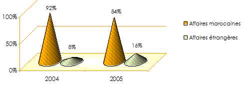 Répartition entre affaires marocaines et étrangères en 2004 et 2005