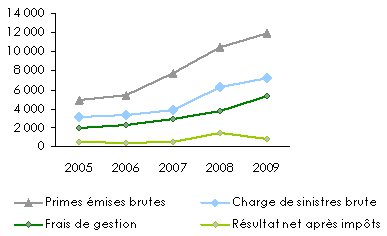 Evolution des primes, sinistres, frais de gestion et résultats