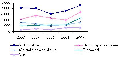 Evolution du chiffre d'affaires par branche: 2003-2007