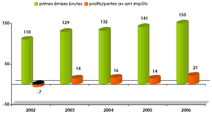 Depuis 2002, tous les indicateurs sont au vert: croissance du chiffre d’affaires, croissance des bénéfices, diversification du portefeuille. Labuan Re progresse sur tous les tableaux.