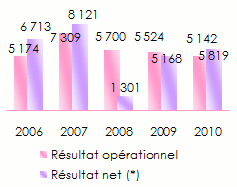| Evolution du chiffre d’affaires 2006-2010 en millions USD | Evolution des résultats 2006-2010 en millions USD |
