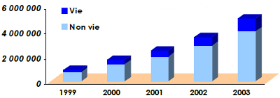 Evolution des primes vie et non vie: 1999-2003