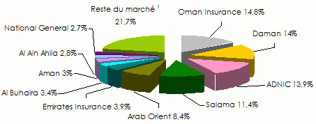 Marché émirati de l’assurance : chiffre d'affaires par compagnie et branche en 2012