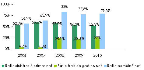 Ratio combiné net | 56,9% | 63,9% | 83% | 77,8% | 79,3% |