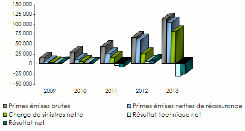 Malgré un fort développement des primes qui ont été multipliées par plus de huit en l’espace de cinq ans (2009 à 2013), la société a du mal à enchaîner des résultats positifs. L’année 2013 a été particulièrement décevante avec une perte nette de plus 26,5 millions USD pour des primes émises brutes de 112 millions USD.