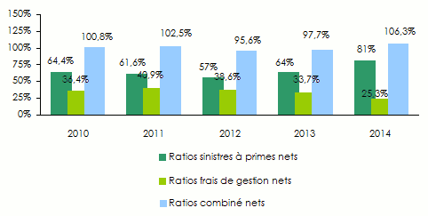 Ratio sinistres à primes net | 64,4% | 61,6% | 57% | 64% | 81% |