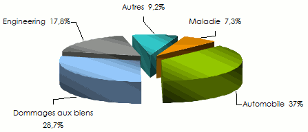 Les branches dommages aux biens et engineering, quant à elles, représentent respectivement 28,7% et 17 ,8% du chiffre d’affaires.