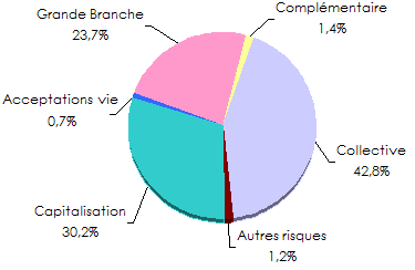 en millions USD| Compagnies | Grande Branche | Collective | Complémentaire | Autres risques | Capitalisation | Acceptations vie | Total | % |